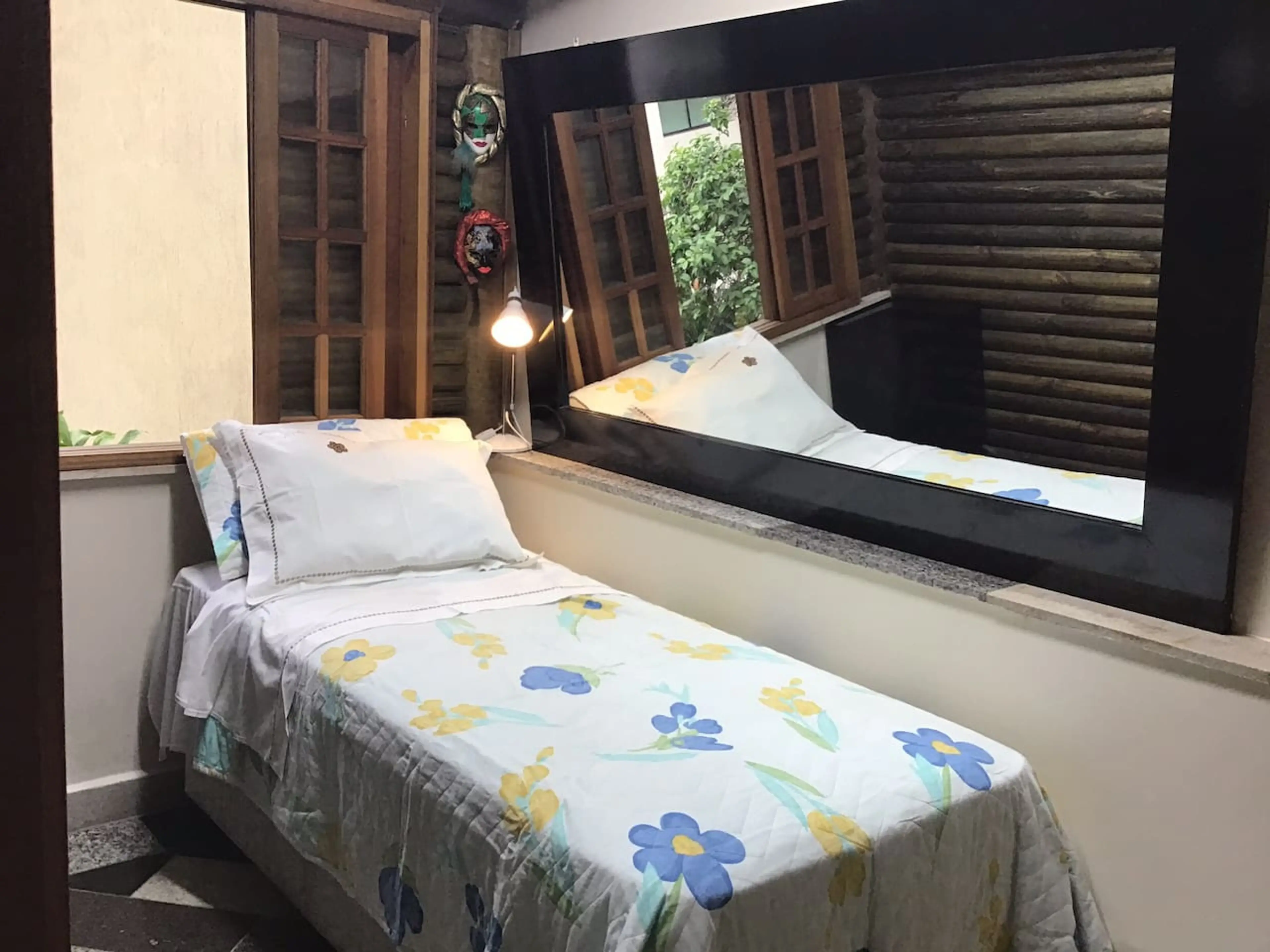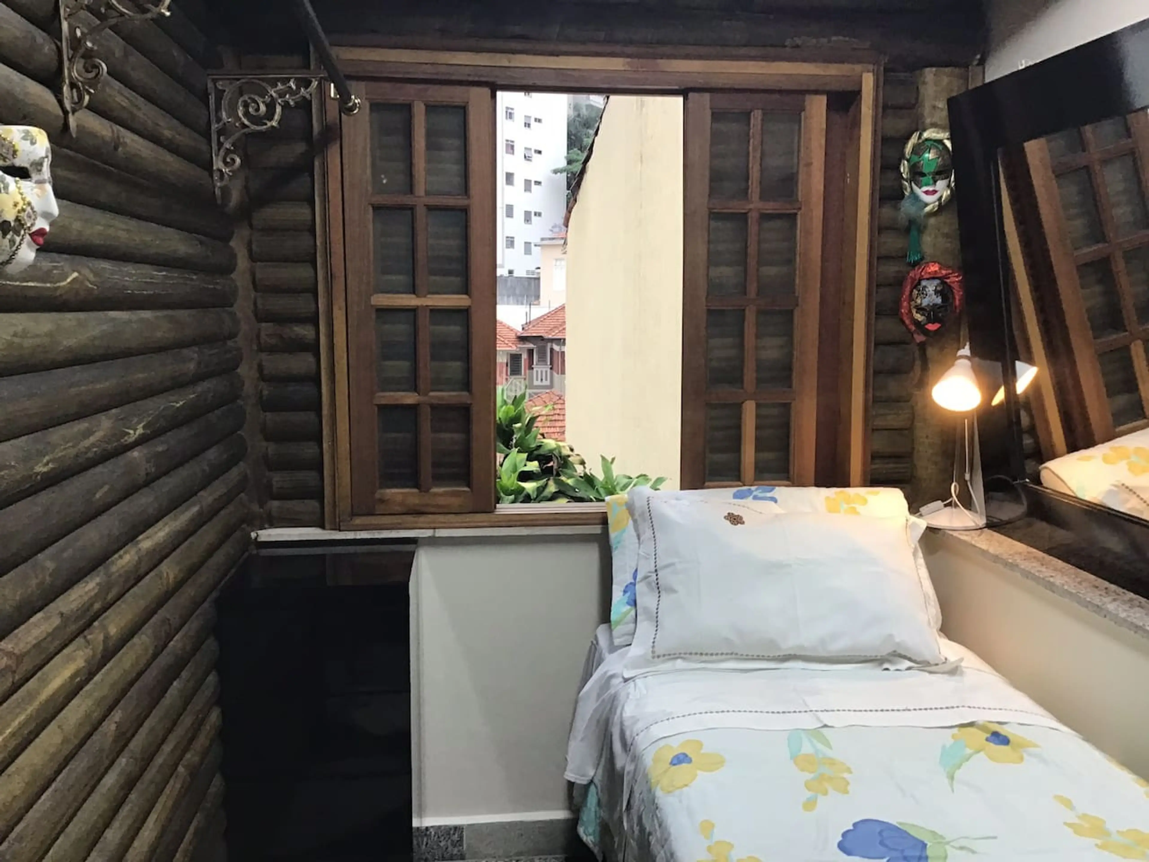 Quarto arejado com cama de solteiro super confortável, espelho grande, mesa de trabalho, ventilador, frigobar e utensílios básicos(prato, talheres e copo). Banheiro compartilhado (limpo diariamente). Estamos localizados em um lindo casarão a duas quadras da Av.Paulista. Fácil acesso ao metrô, cinema...