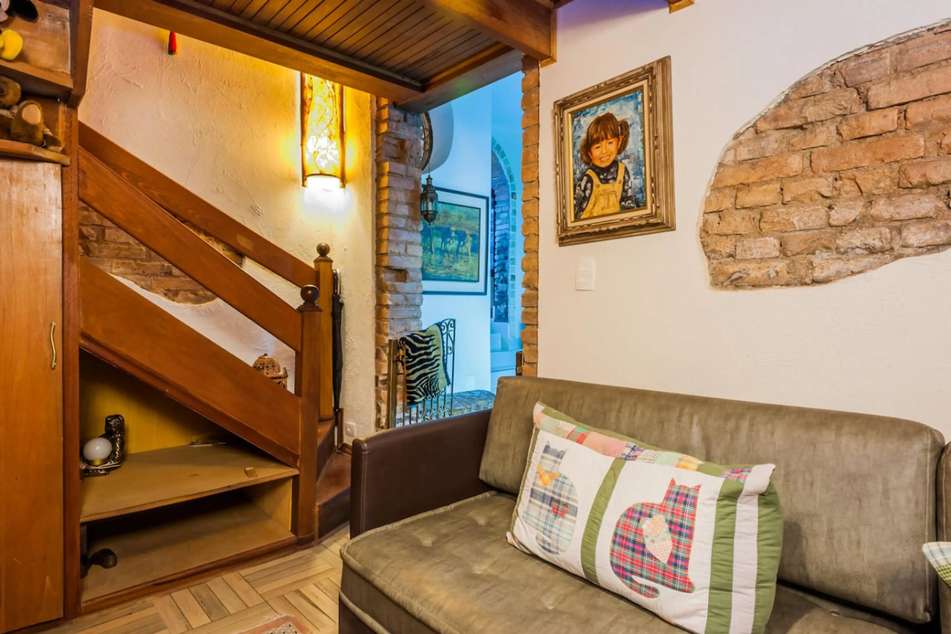 Quarto privativo p casal , com saleta aconchegante Banheiro compartilhado fora do quarto Cama de casal em mezanino aconchegante Saleta com sofá cama confortável Acesso à cozinha ....Wi-Fi ...geladeira....e um jardim maravilhoso! A qualquer hora que seja necessário Comércio....restaurantes ....ci...
