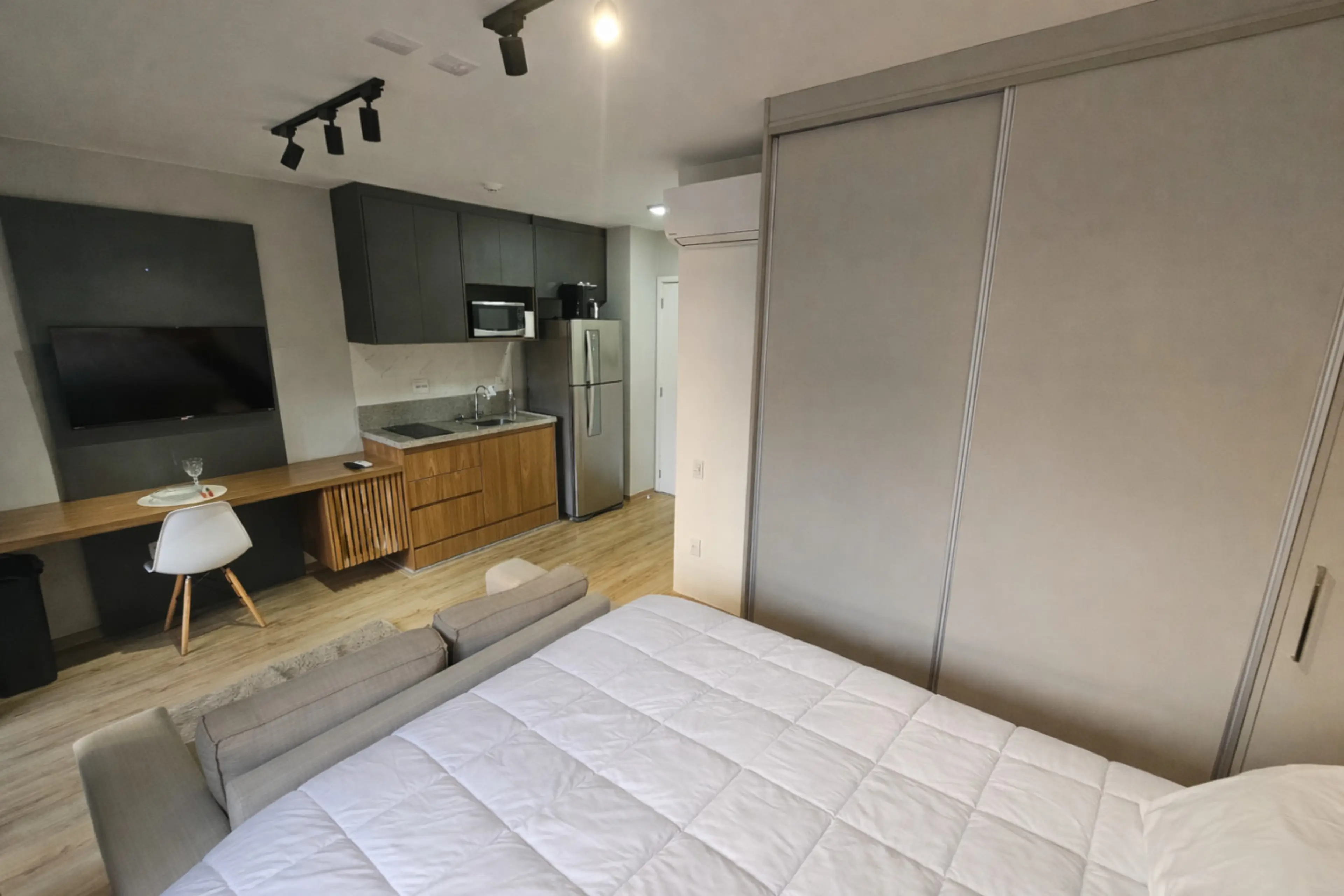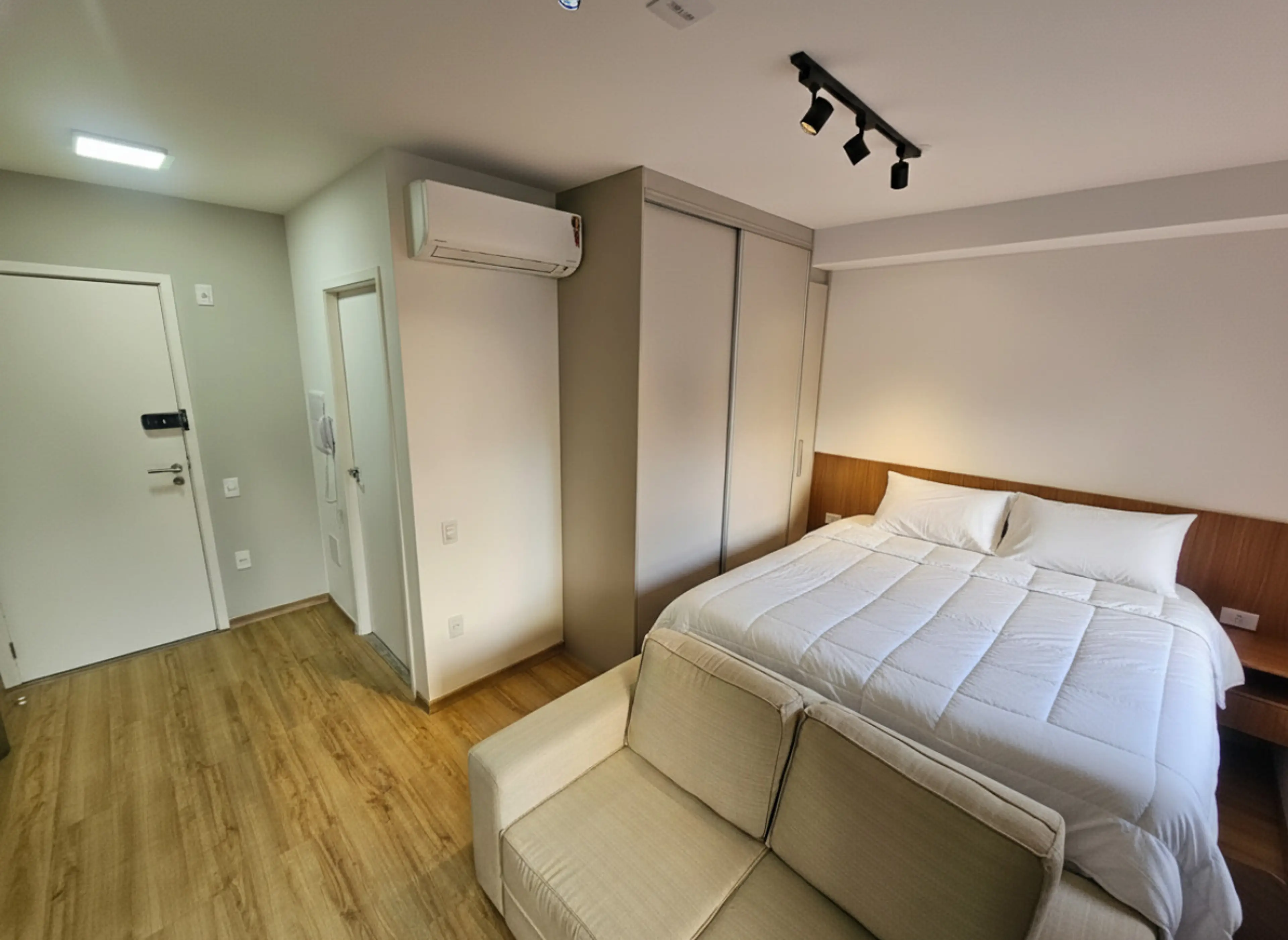 Conforto, localização e estrutura completa em Moema. Este studio moderno no Nex One Ibirapuera é ideal para quem vem a São Paulo a trabalho, cursos ou estadias pra descanso. A poucos minutos do metrô e do Shopping Ibirapuera, oferece cama queen confortável, ar-condicionado, cozinha equipada, espaço...