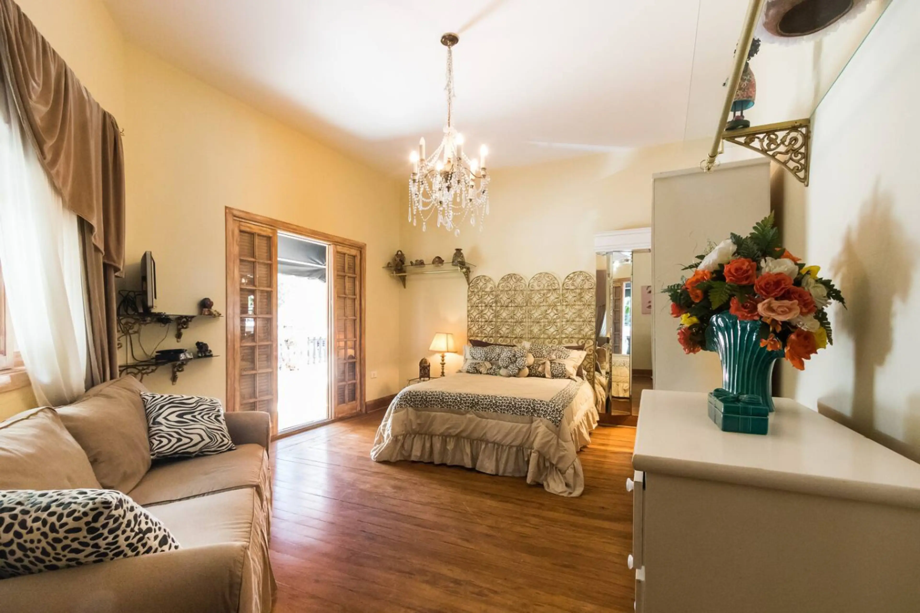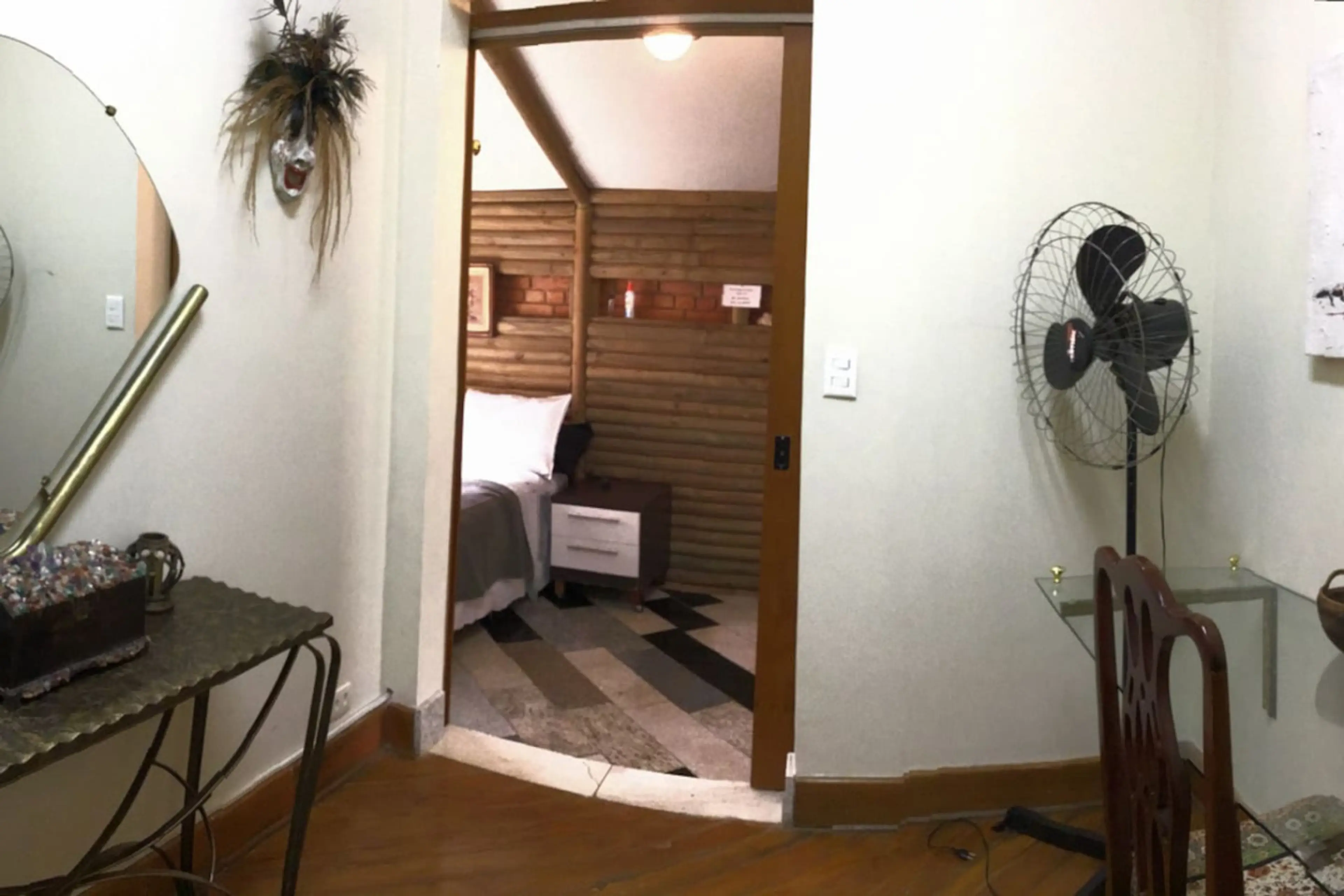 Belíssimo quarto arejado, possui uma cama de casal super confortável, sofá, frigobar, guarda roupas, tv e internet Wi-Fi, espelho grande, máquina de nespresso, mesa para refeições e banheiro exclusivo fora do quarto. Área Terraço enorme com mesinha , cadeiras de jardim somente para os hóspedes deste...