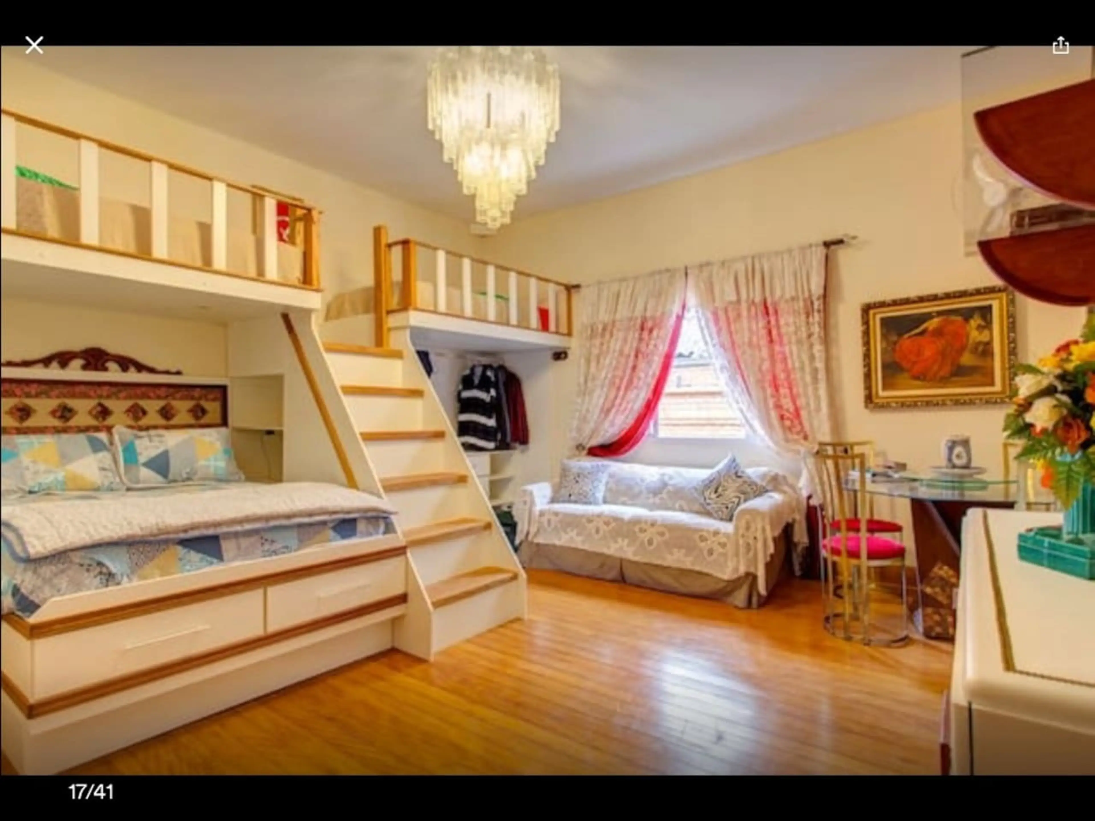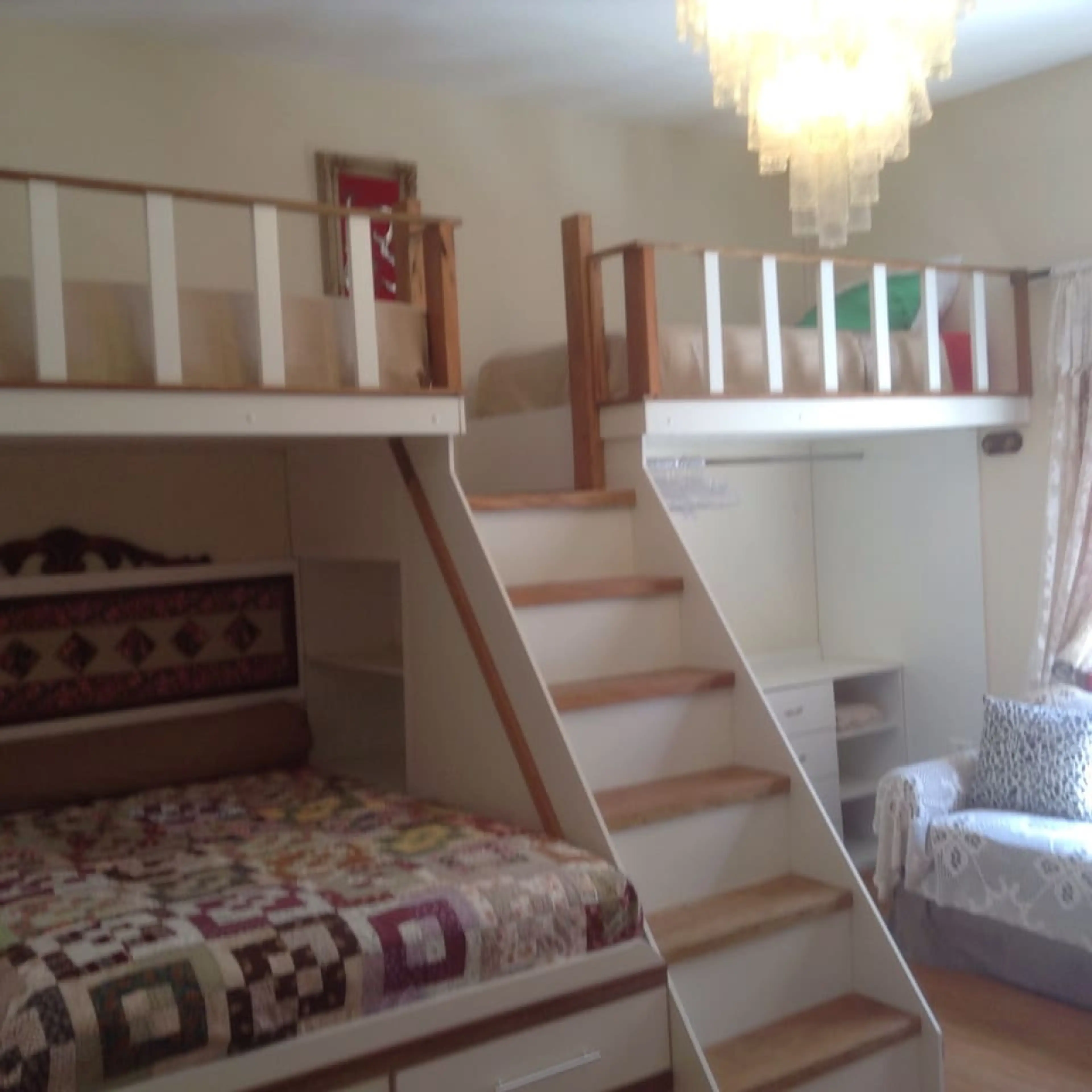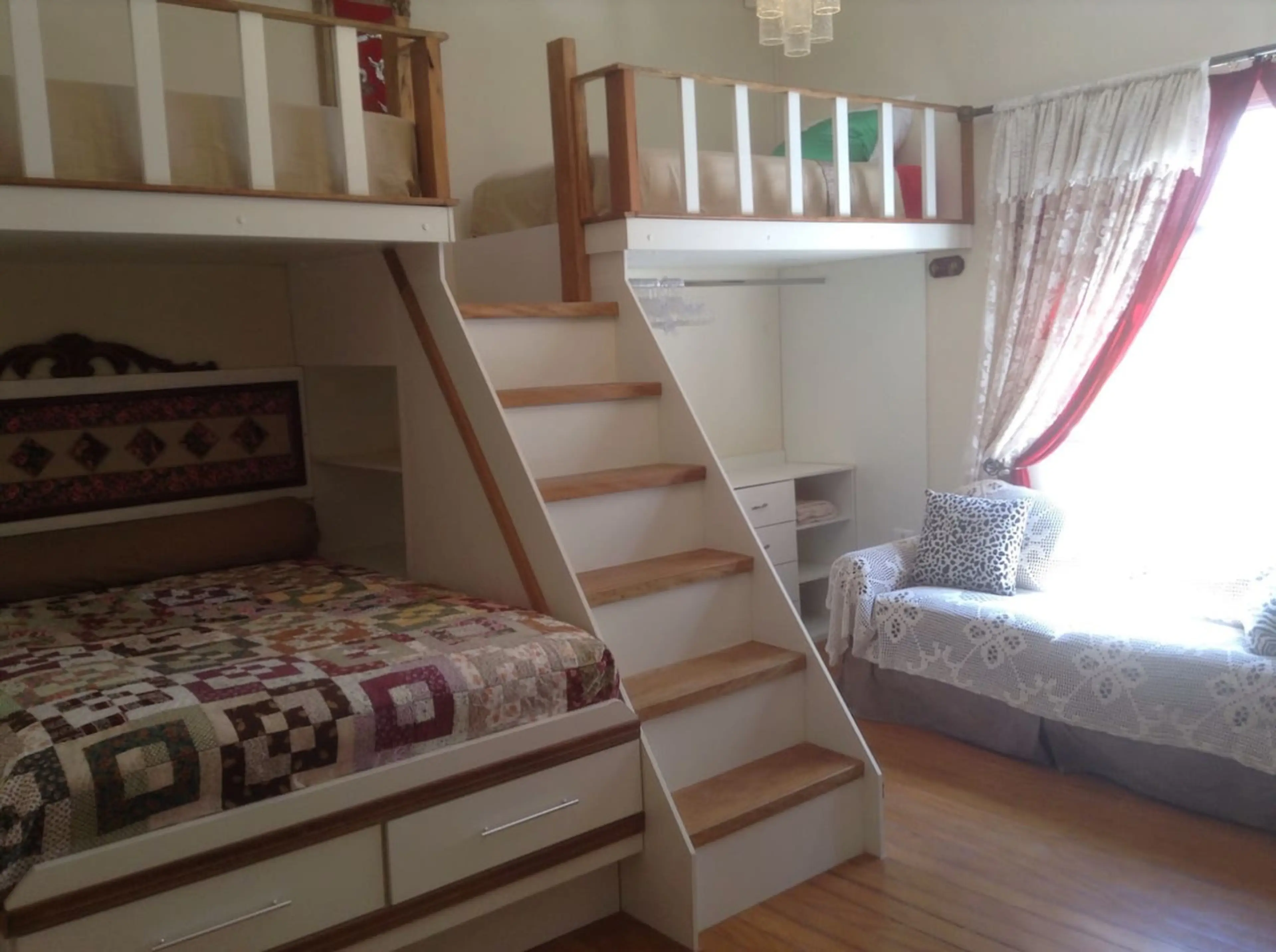 Quarto grande. Contém uma cama casal e duas camas de solteiro super confortáveis, TV 43 polegadas, frigobar, mesa para refeições, sofá 3 lugares, espelho grande, utensílios básicos(pratos, talheres, copos), máquina de Nespresso. Perfeito para acomodar famílias com até 4 pessoas. Estamos localizados...