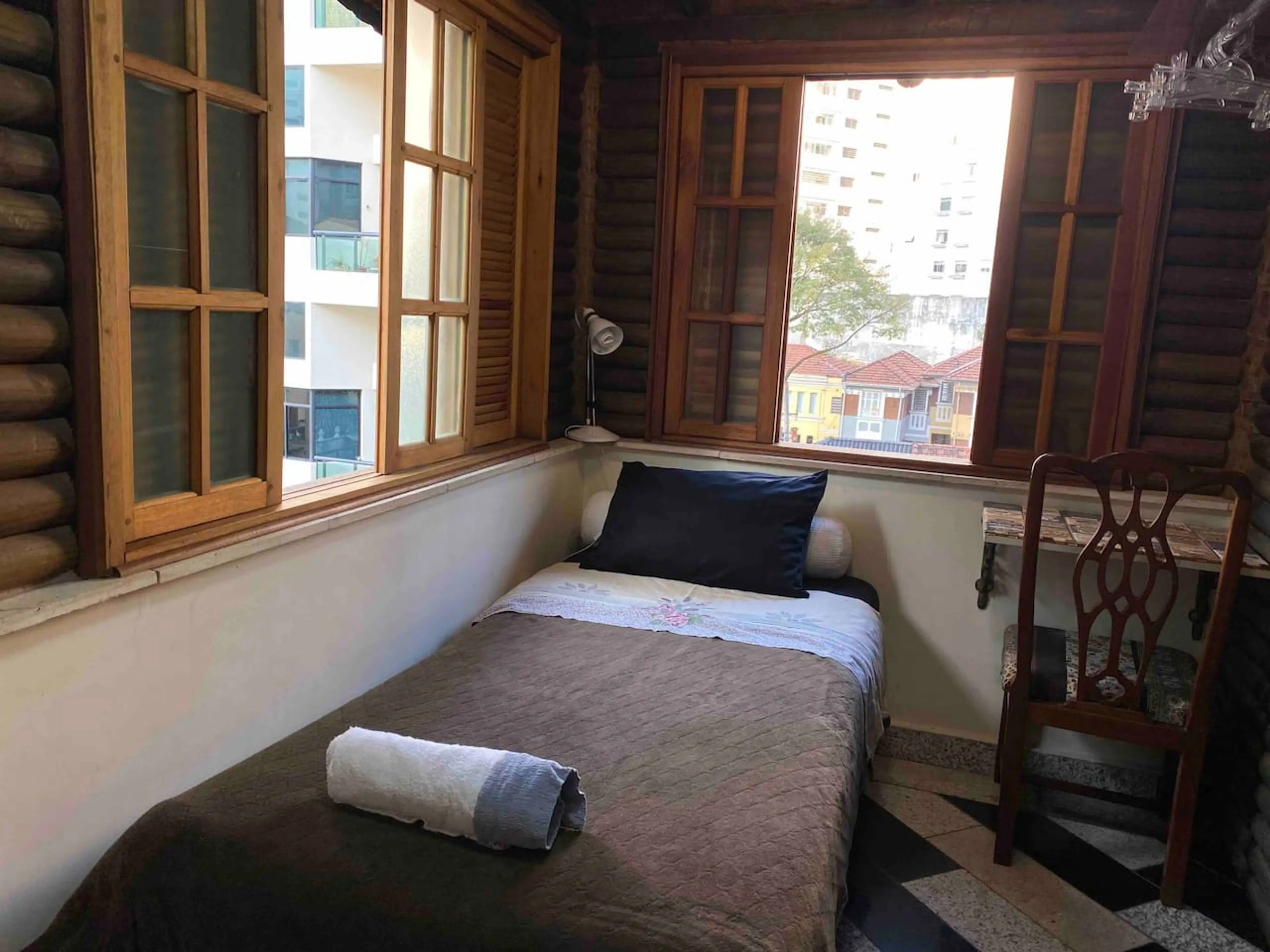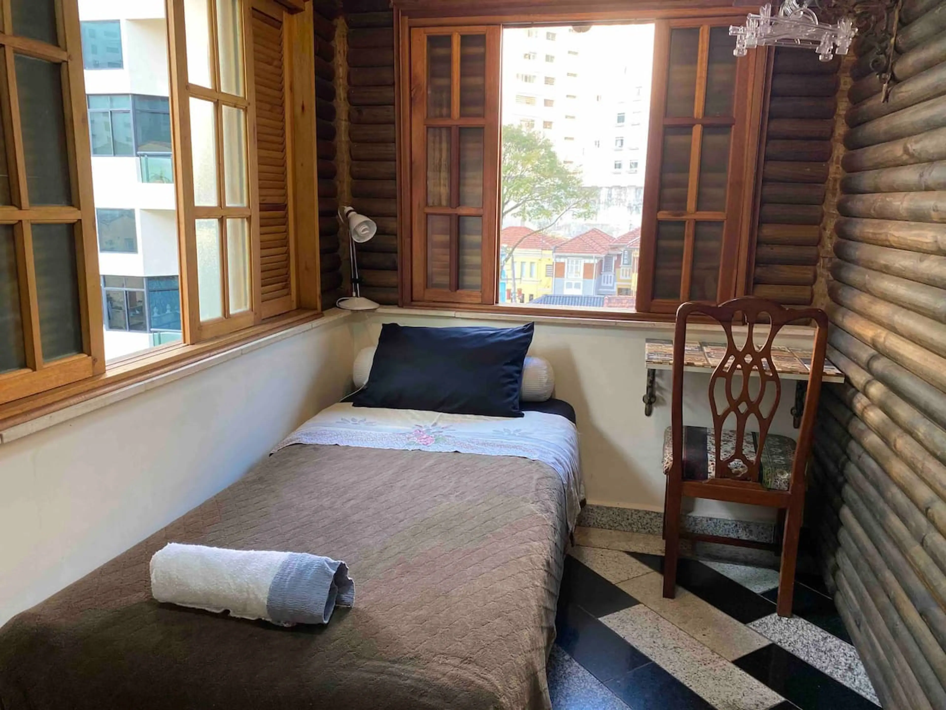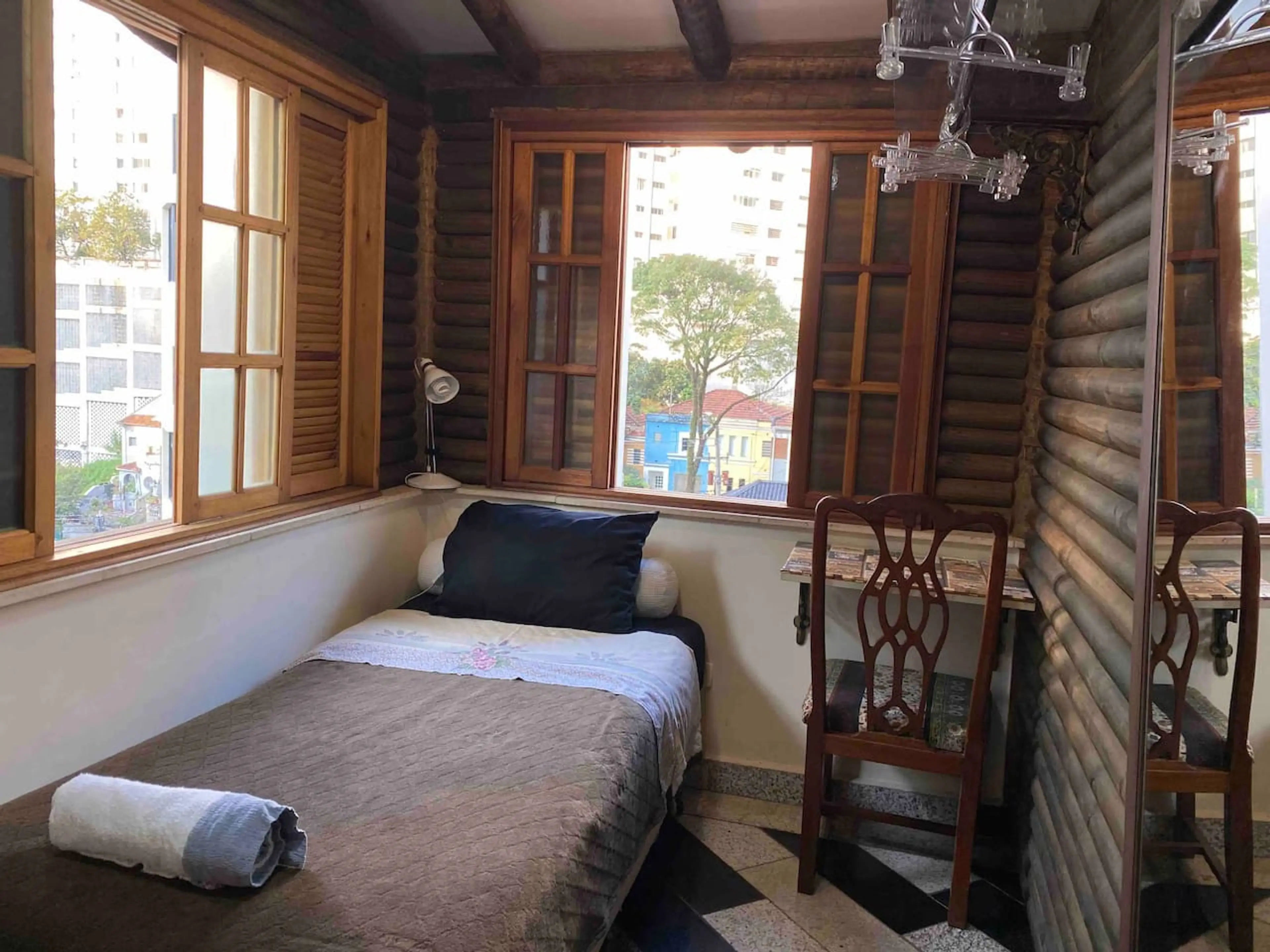 Quarto arejado e luz natural. Há uma cama de solteiro bem confortável, pia, itens básicos(prato, talher e copo), mesa de trabalho, espelho grande e banheiro compartilhado limpo diariamente. Estamos localizados em um lindo casarão a duas quadras da Av.Paulista. Fácil acesso ao metrô ,cinemas ,resta...
