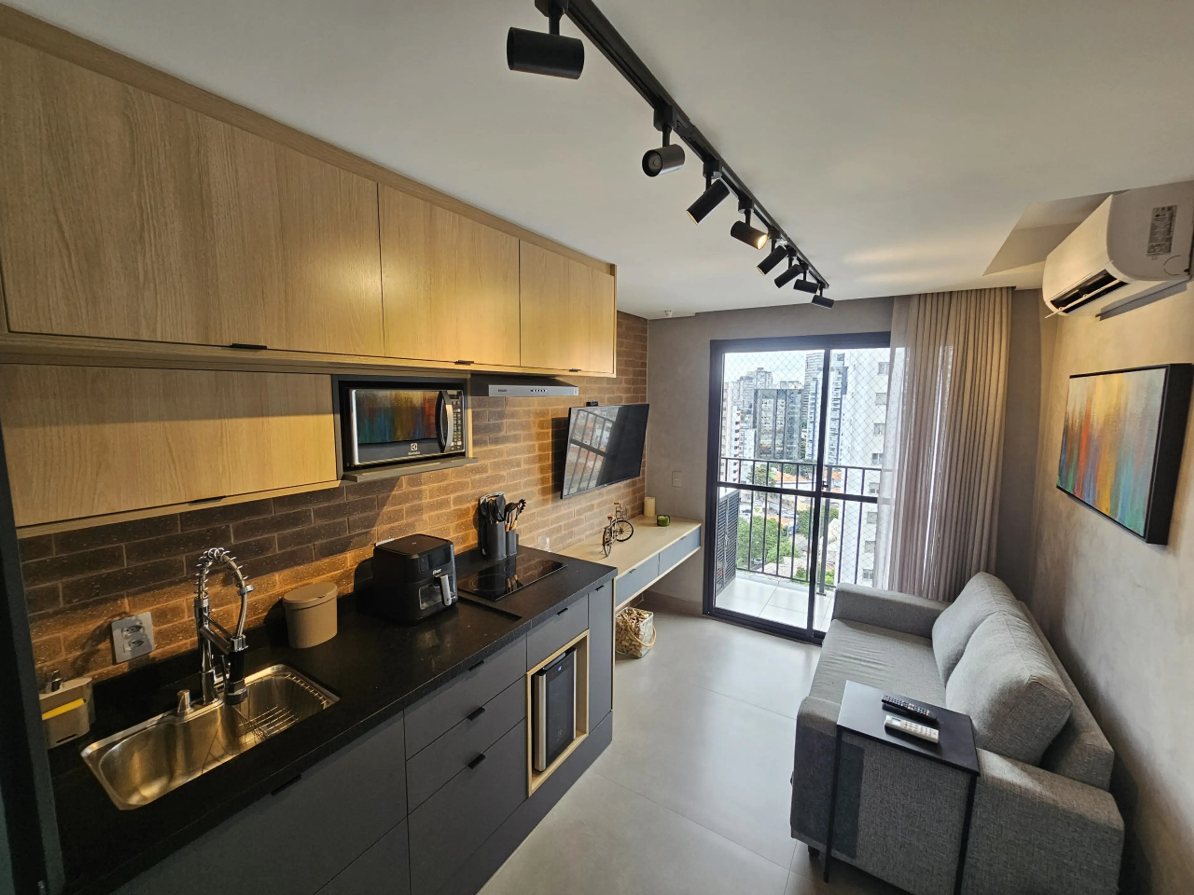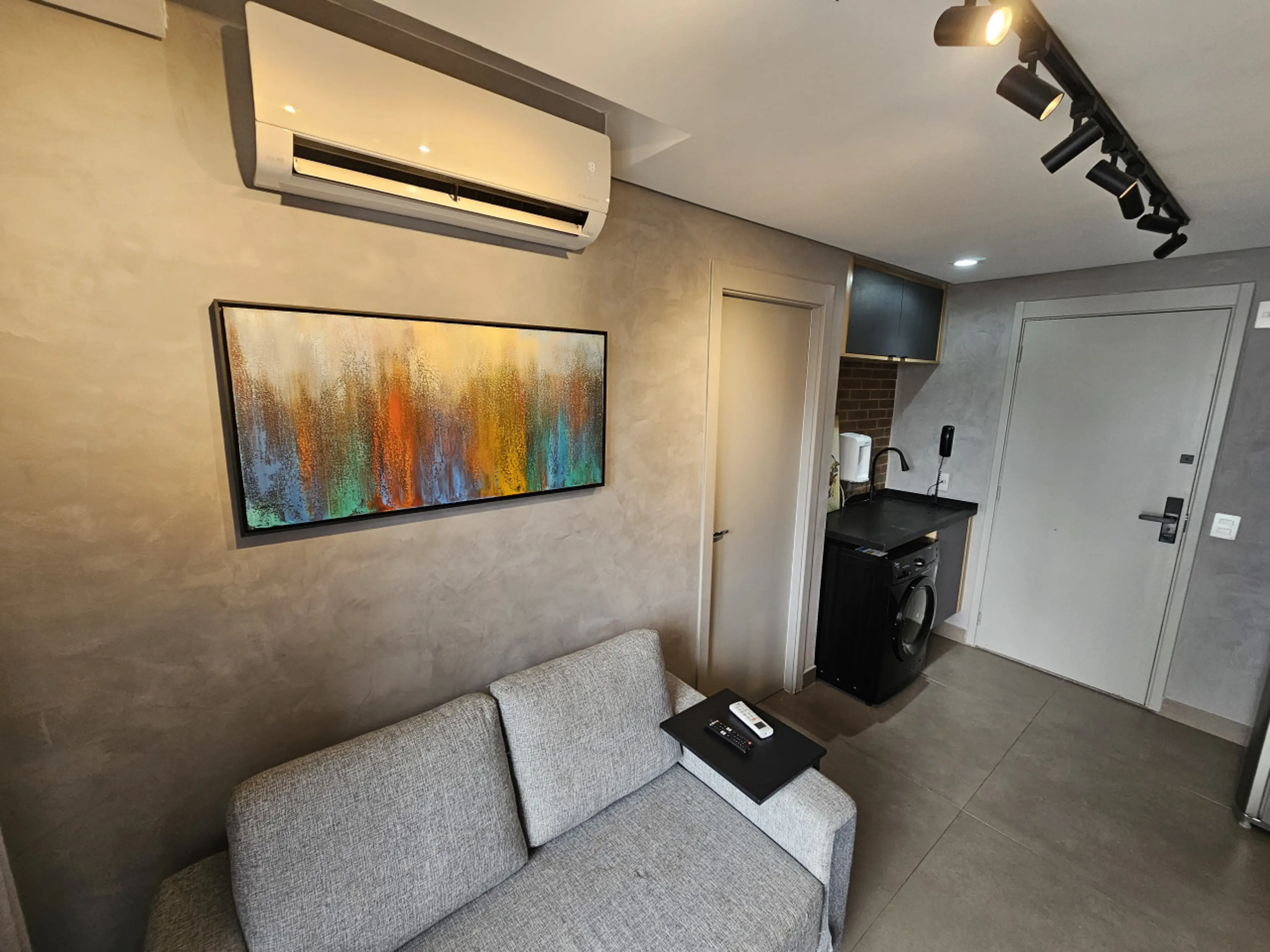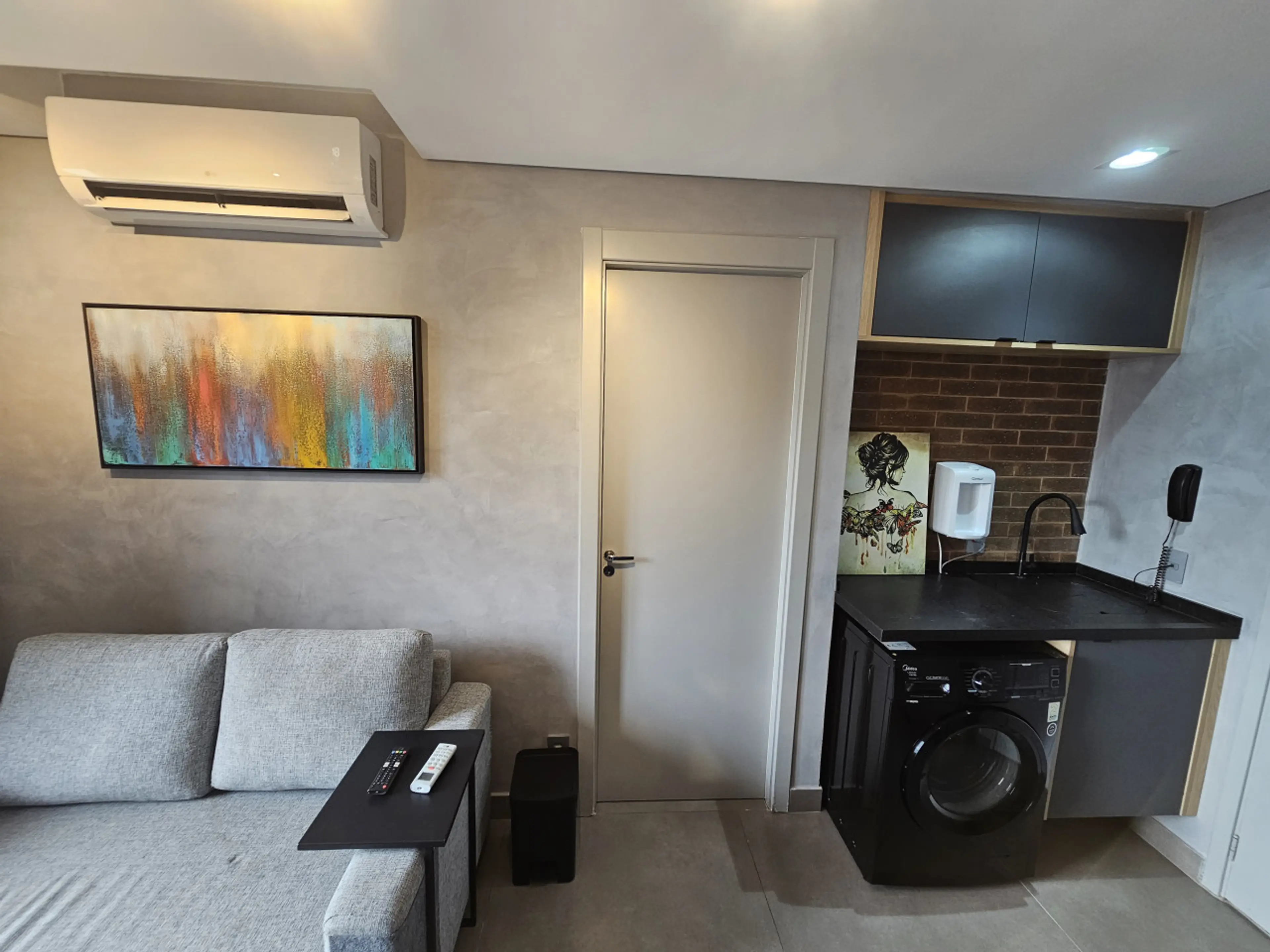 Studio moderno e bem planejado, ideal para quem vem a trabalho ou estudos, ou quer apenas descansar. Conta com cozinha completa, ar-condicionado e Wi-Fi. Ambiente funcional e confortável, bem iluminado e pensado para uma estadia prática, tranquila e bem localizada em São Paulo.