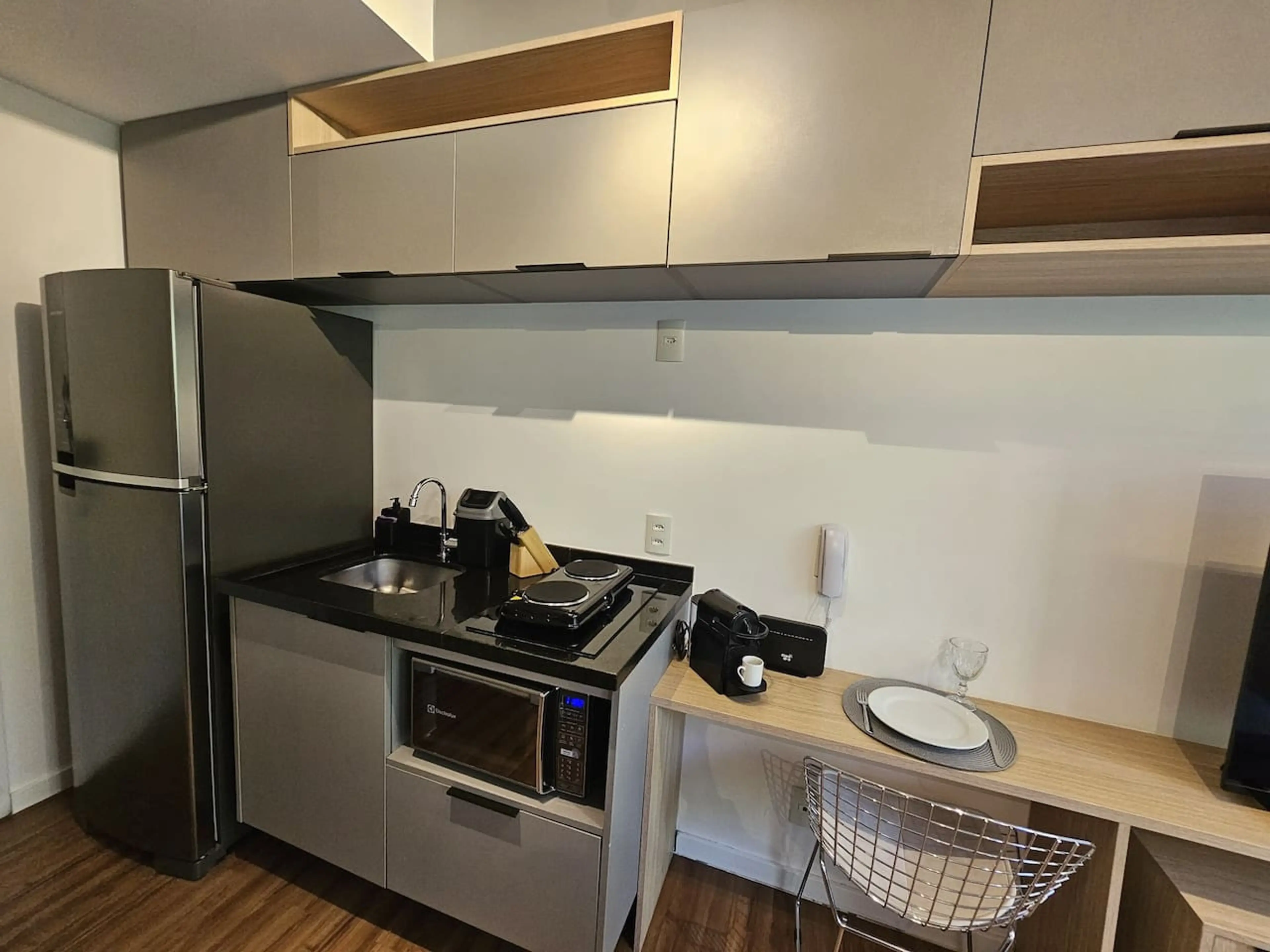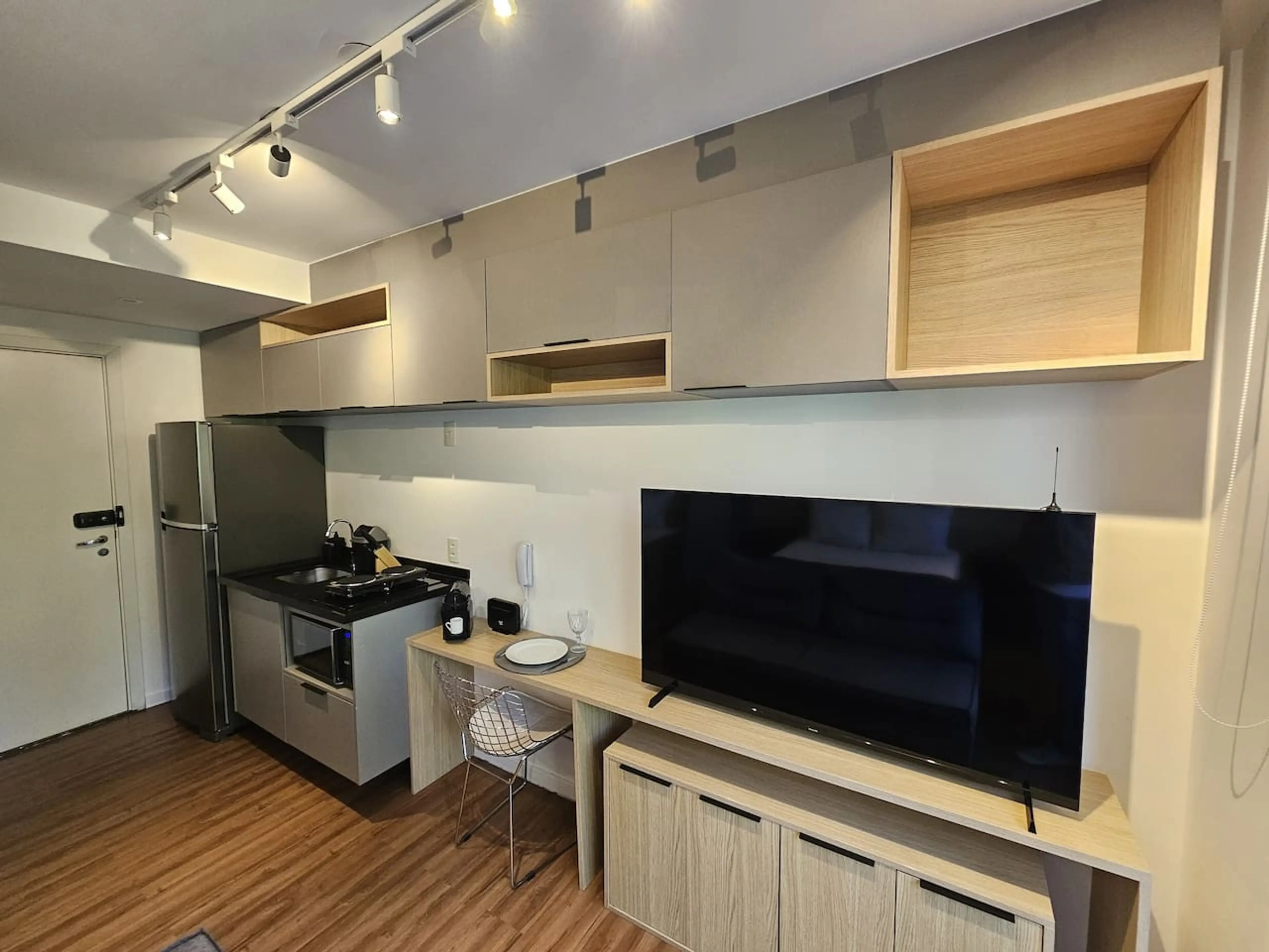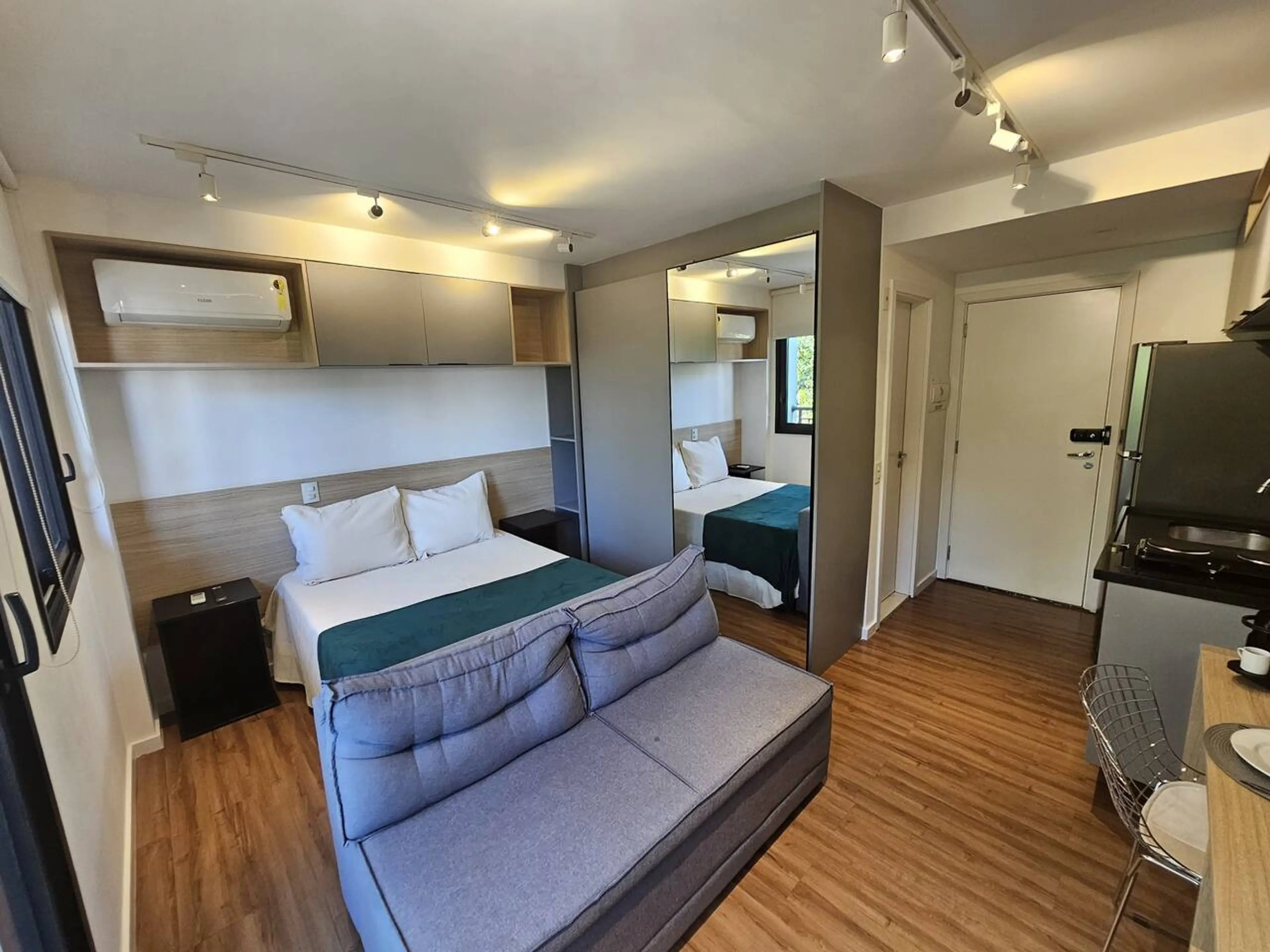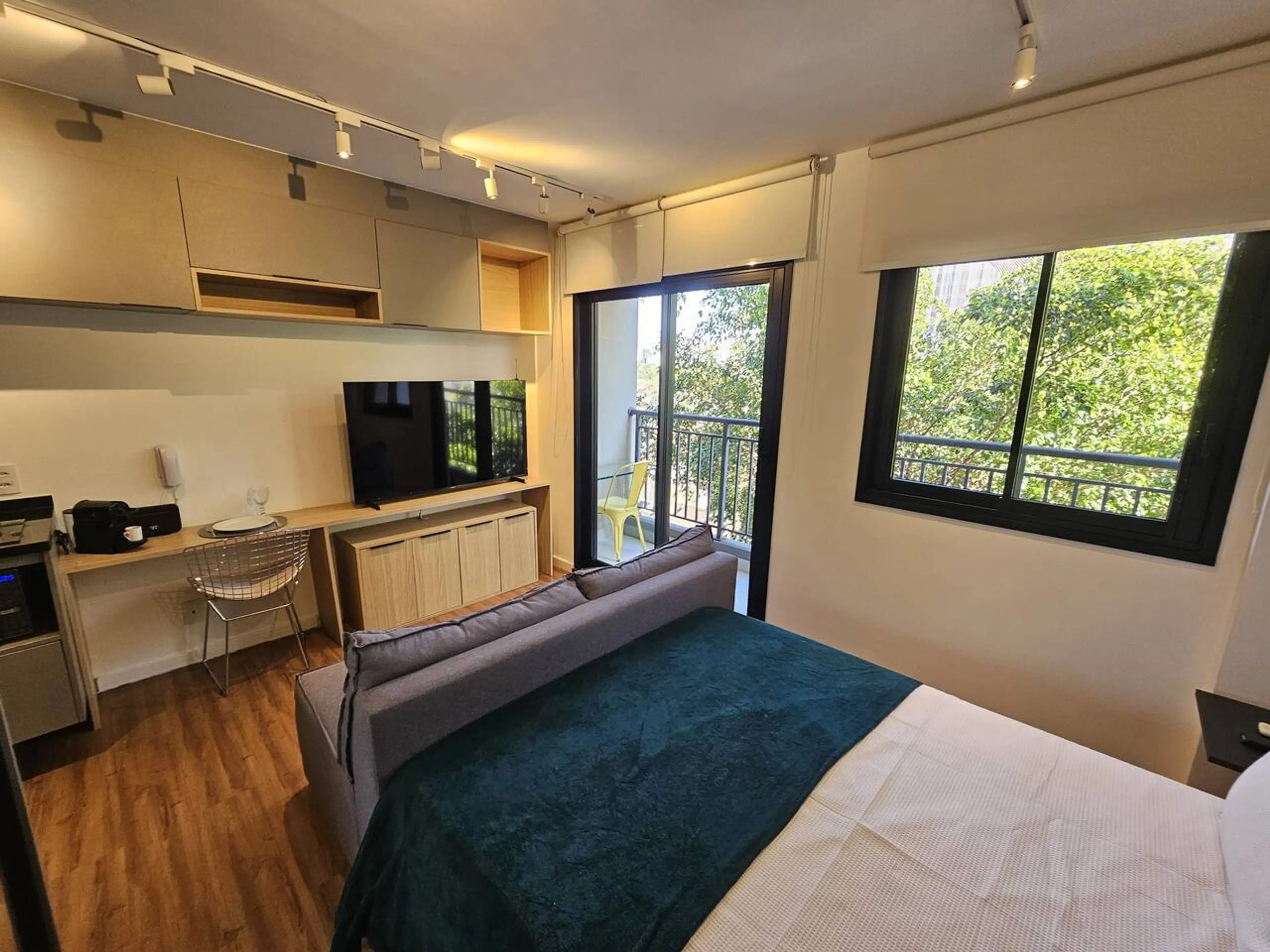 Studio com varanda localizado em Moema dentro de condomínio com piscina, academia e lavanderia. O espaço é bem equipado com tudo que você precisa para ter uma estadia tranquila e confortável, incluindo smart TV e Wi-Fi rápido. Importante: O prédio não possui estacionamento! O apartamento dispõe de...