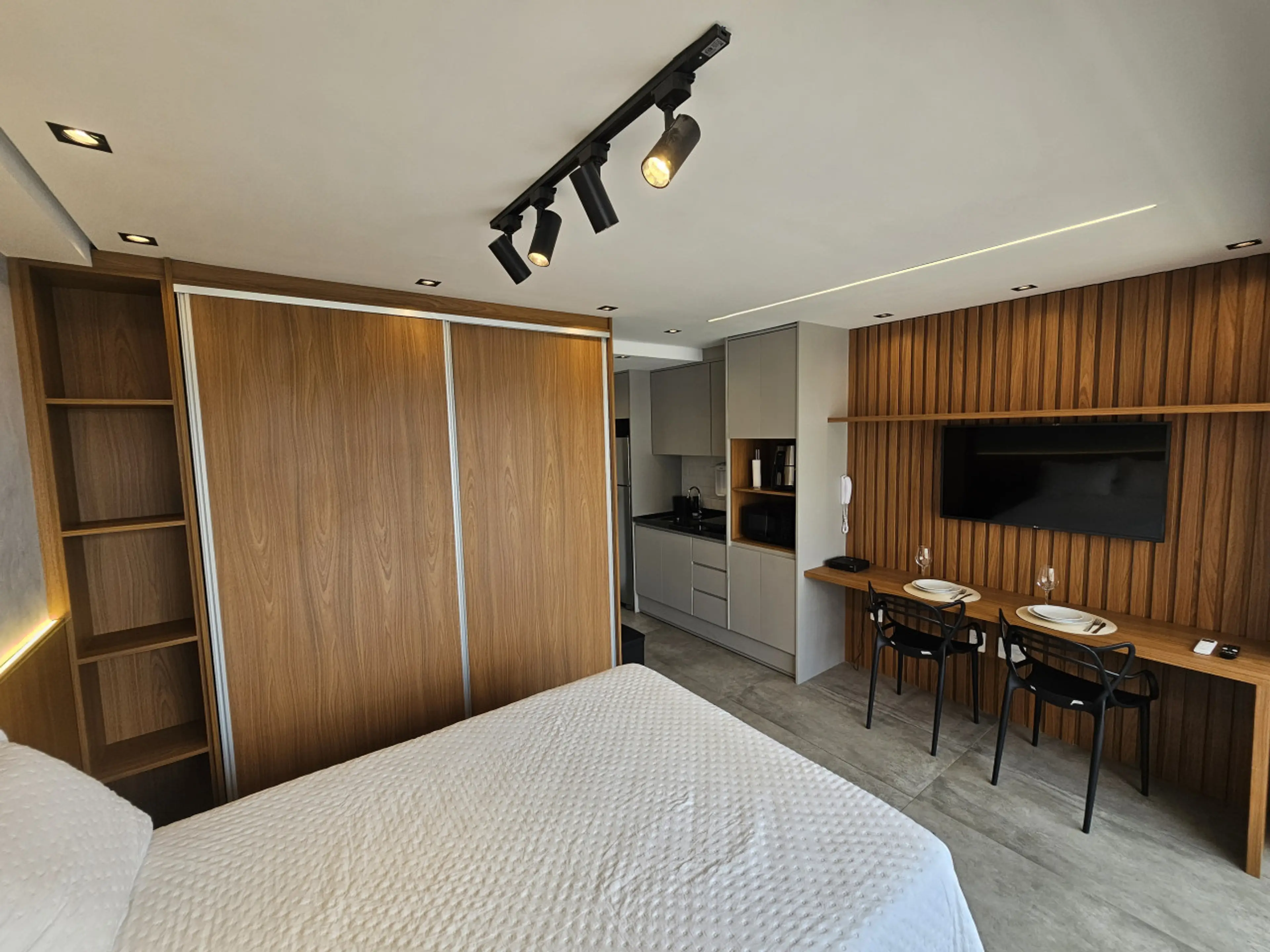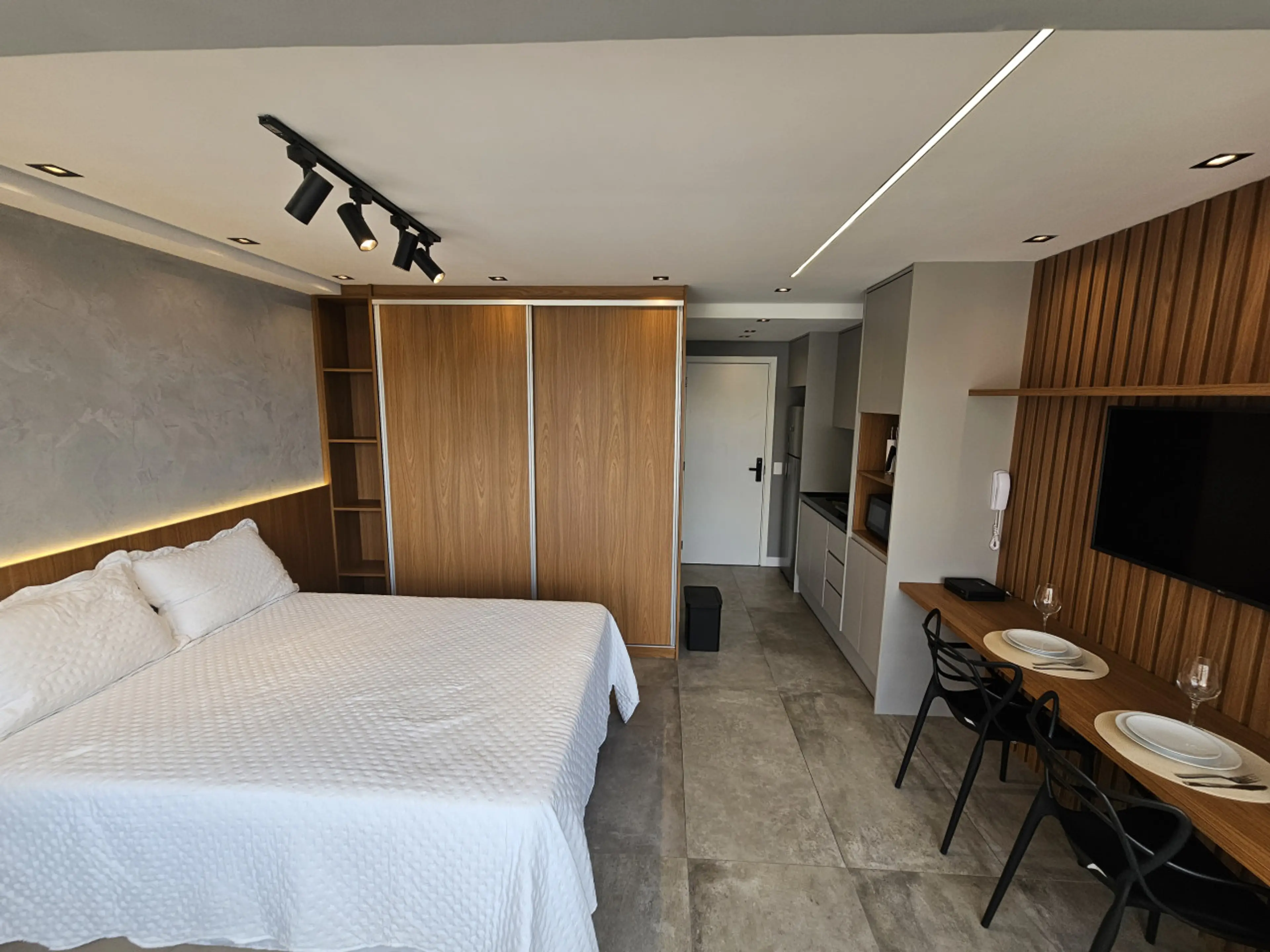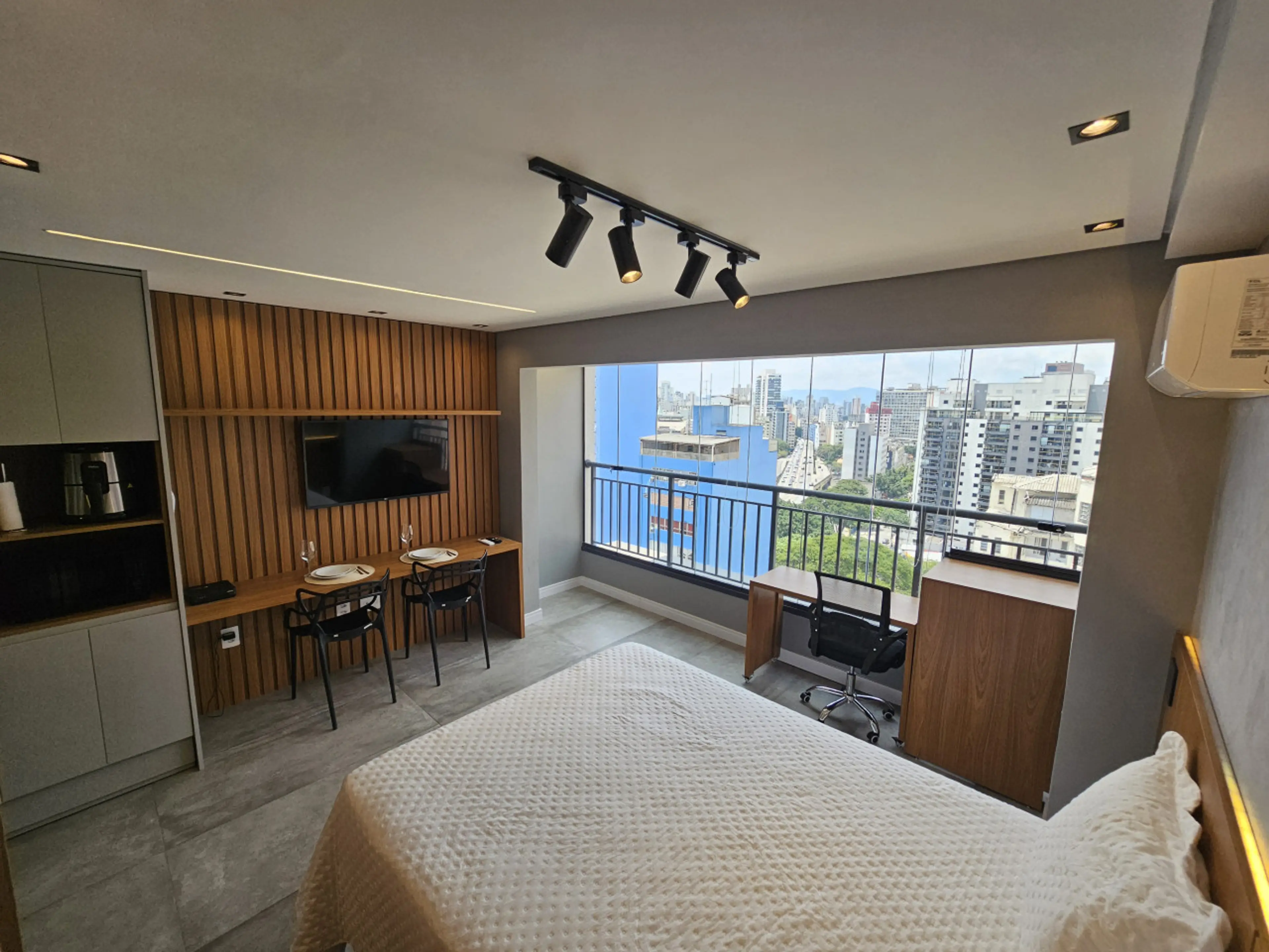 Studio bem iluminado e prático, ideal para quem busca uma estadia confortável e bem localizada em São Paulo. O espaço conta com cozinha equipada, Wi-Fi rápido e ambiente agradável para descansar após o dia. O condomínio dispõe de piscina, academia, coworking e lavanderia. Localizado a poucos passos ...